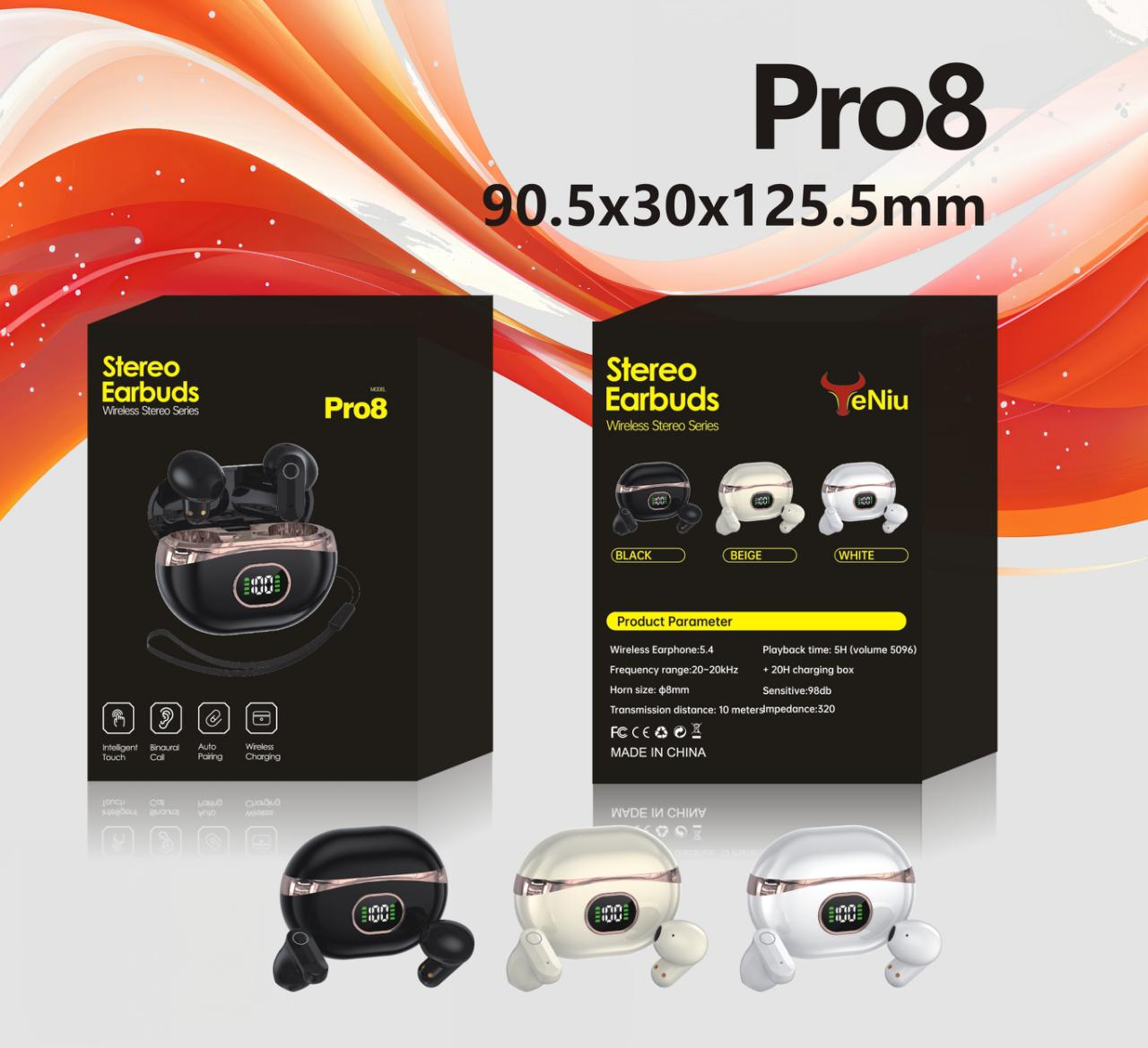 The Pr1- pro8 TWS Wireless Earbuds are designed for seamless integration into mobile, tablet, and laptop audio systems, offering reliable wireless connectivity up to 15 meters. With a robust design featuring IPX-4 waterproofing and a long battery life exceeding 20 hours, these in-ear headphones ensure uninterrupted performance. The 30mAh battery charges in 1-3 hours via Type-C, supporting reverse charging for added convenience. A private mold and custom package options enhance branding opportunities, while flexible MOQ and fast sample service cater to diverse sourcing needs. 2 kinds of package , the green and black