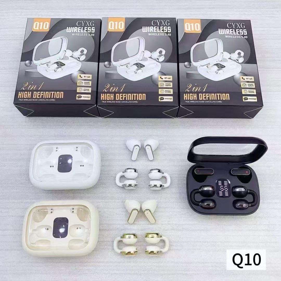 Experience superior audio with the Q10 TWS and OWS two pairs double earphones, featuring Bluetooth 5.4 for a stable connection and low latency of less than 30ms. The dual LED digital display provides real-time battery status, while the IPX-4 waterproof rating ensures durability. Enjoy up to 6 hours of playtime and switchable Chinese-English voice prompts for added convenience.