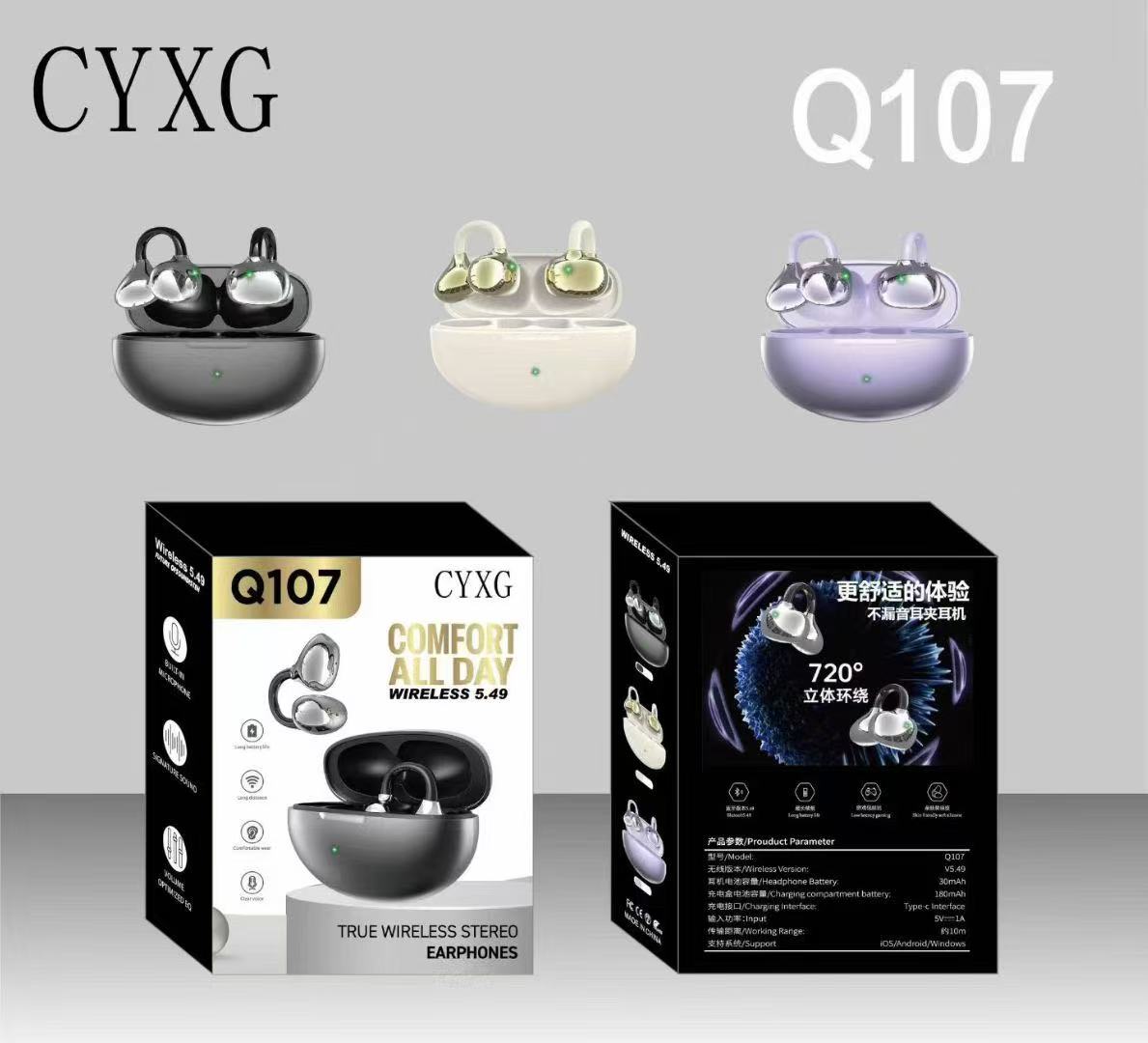 / Q107 Ear Clip Electroplated Appearance True Wireless Earphones Waterproof Hd Call Bone Conduction Headphone