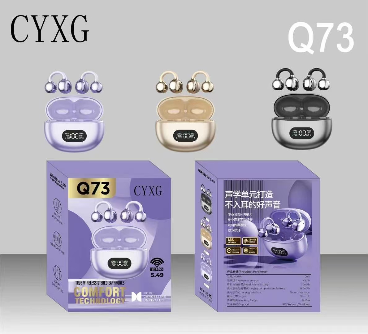 / Q73 Ear Clip Electroplated Appearance Led Power Display True Wireless Earphones Waterproof Hd Call Bone Conduction Headphone