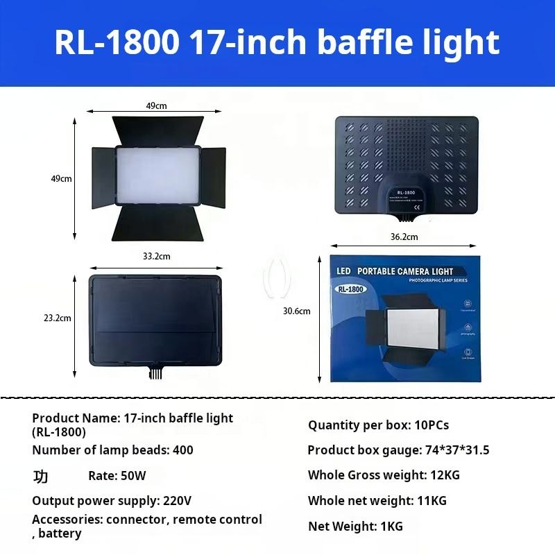 The RL1800 Live Streaming Fill Light Panel is designed for professional live streaming and photography, offering adjustable color temperature for precise lighting control. Its robust ABS construction ensures long-term durability, while the remote control feature enhances ease of use. With a lightweight design and portable tripod, it supports flexible setup and mobility. Accepting OEM/ODM requests, this product provides versatile sourcing options. Fast sample service and low MOQ make it ideal for businesses seeking efficient testing and scalable orders.