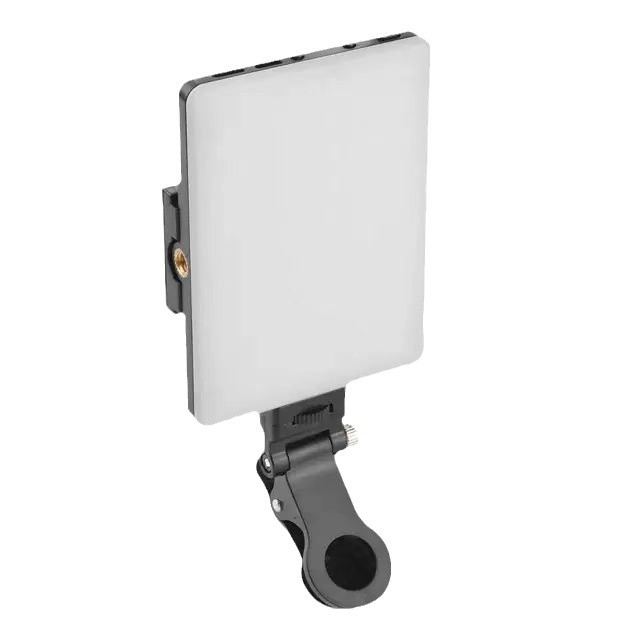 This RGB LED Fill Light is a portable, clip-on light for live streaming, makeup, and video calls. It features adjustable color temperature (2500K-6000K), 10-level brightness, and a CRI of 95+ for accurate color rendering. Compact at 104*75*12mm, Supports custom logo engraving and suits phones, tablets, and laptops.